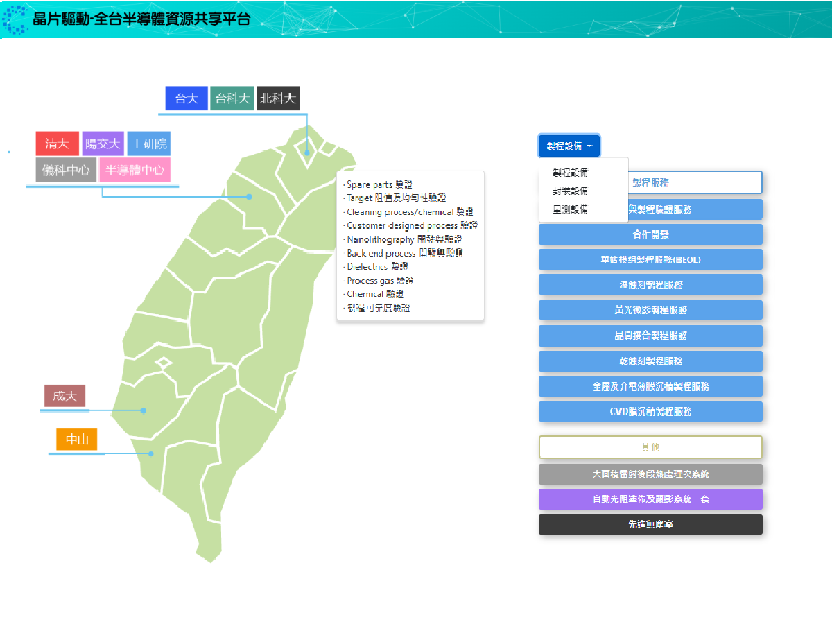為促進半導體資源整合與共享,國家實驗研究院半導體中心建置「全臺半導體共享及預約管理系統」,整合全臺各大半導體學院之製程服務與儀器設備資源,並於今(114)年1月正式上線。